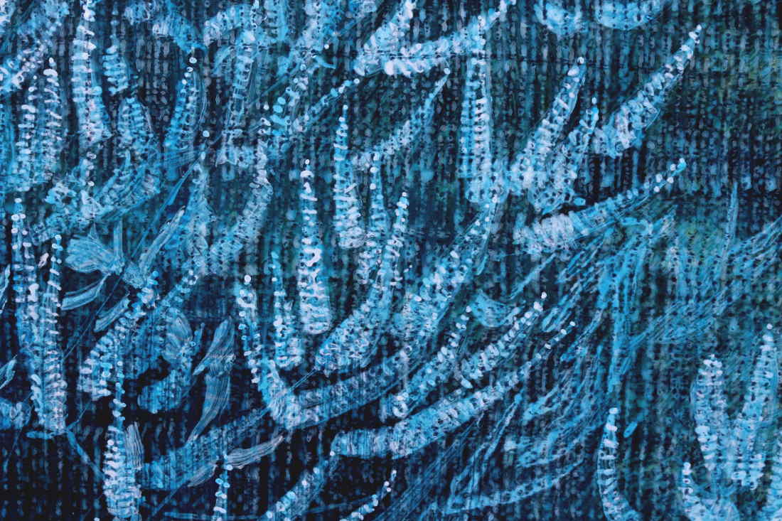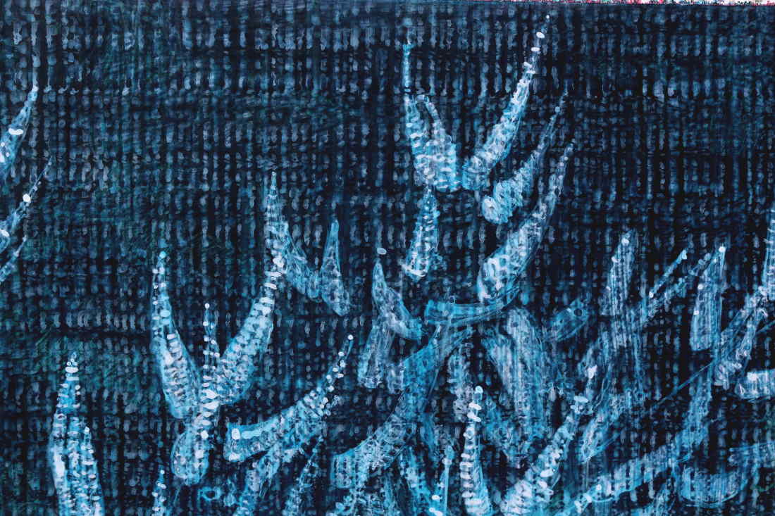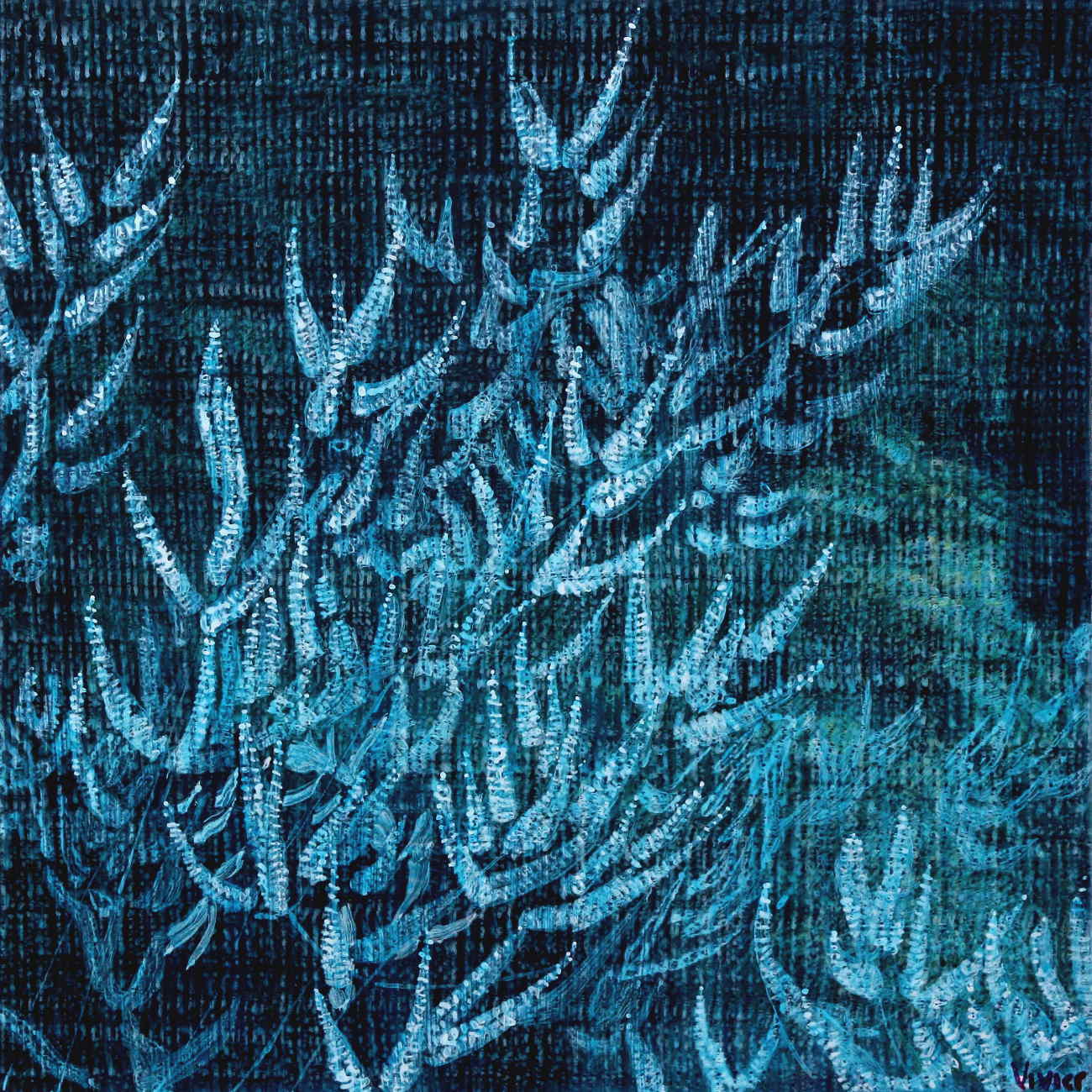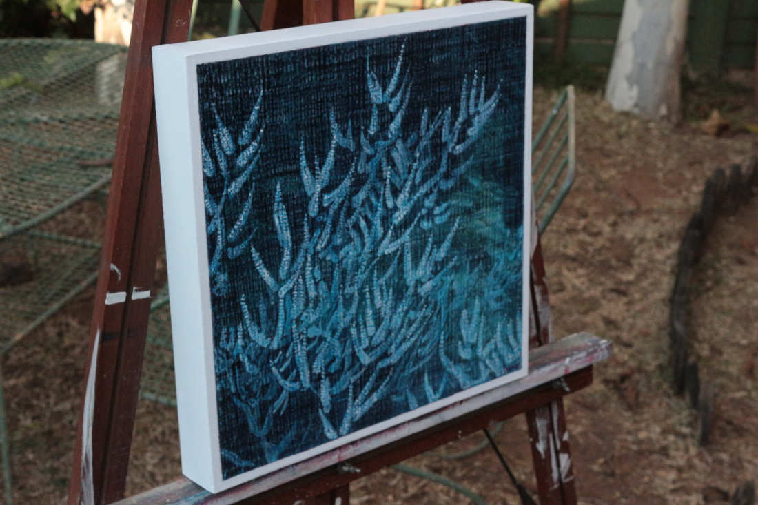 I enjoy imagining the petals emancipating themselves from the pixellated grid of the ’screen’. The fecund vegetation is reaching out, pressing in, striving, searching and longing for something. The painting also strikes me in some ways like a sweet fizzy cooldrink, which creates a tension with the sincerity of the intent.