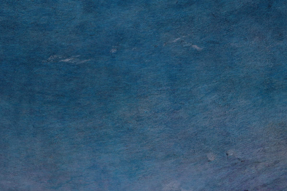 When I contemplate this painting, I think of a rough boy that has been dressed up in a suit, his mother has wiped his nose and told him to behave. There is comedy, as he strains to compose himself, and to conform. He has been asked to fall deeper into the world of society, and asked to further abandon his own world, where the only rule is his rule. I find it sublime to project this landscape as a personality, perhaps even projecting a personality I know, where instead of seeing their face, I would be presented only with this vast expanse of wilderness. It would be sublime because it contains something so profoundly untamable, and a force that would be so far beyond my capability to control.